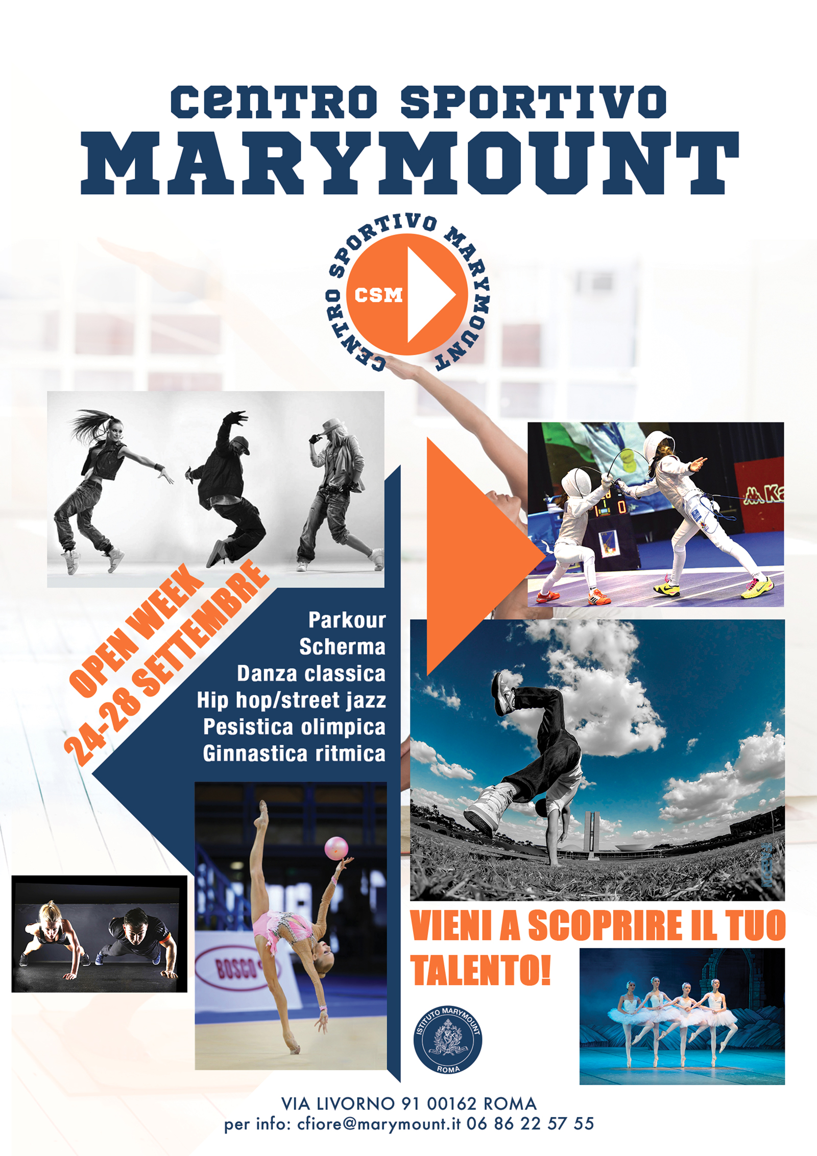 È con entusiasmo ed orgoglio, che l’Istituto Marymount ha avviato l’apertura del “CENTRO SPORTIVO MARYMOUNT” presso gli impianti della nostra sede MARYMOUNT HIGH SCHOOL di via Livorno 91.