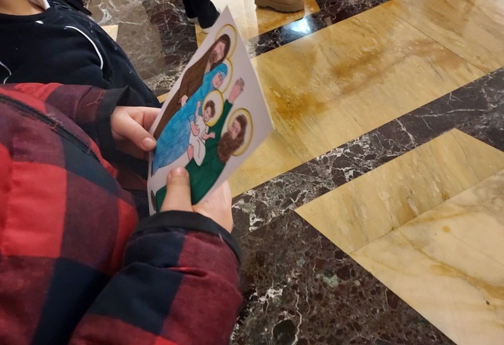 Dopo questo momento di confronto, infatti, alcuni bambini, in rappresentanza di ciascuna classe, hanno portato candele e immagini raffiguranti la Sacra Famiglia verso l’altare e, successivamente, tutti insieme, hanno intonato il brano La luce vedrà – C’è una candela.