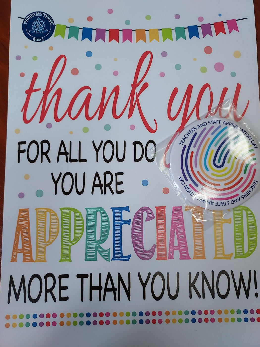 Un giorno speciale per celebrare l’impegno e la dedizione di tutti coloro che lavorano nella nostra Scuola, apportando il proprio prezioso contributo, quotidianamente e con entusiasmo, a favore dell’intera comunità Marymount: