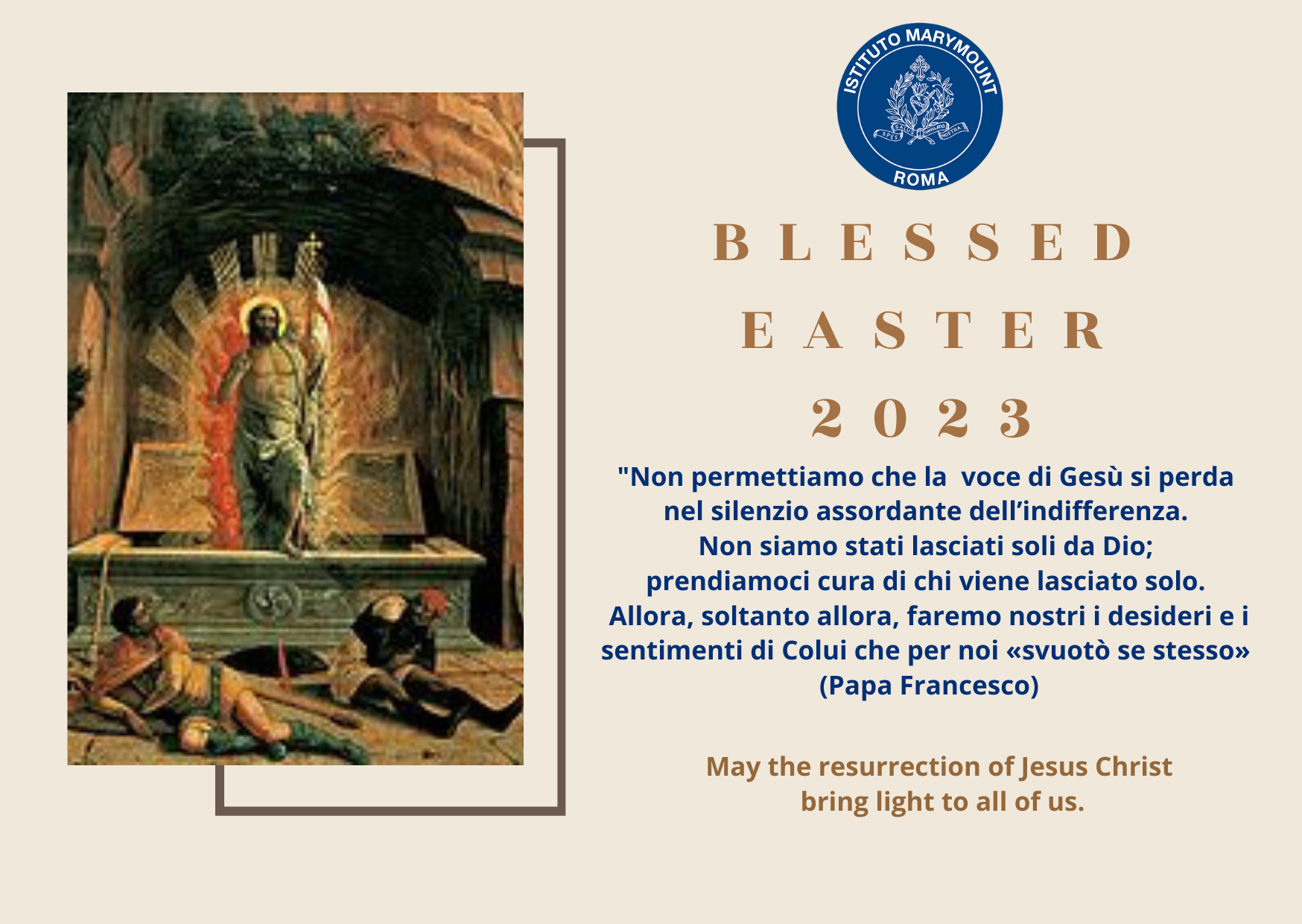Il Preside, il Vice Preside e tutto il Leadership Team augurano a tutti di trascorrere delle serene vacanze in compagnia dei vostri affetti più cari in occasione della Santa Pasqua. Che questa sia un’occasione per rigenerarsi e condividere dei momenti di gioia e serenità con le vostre famiglie.